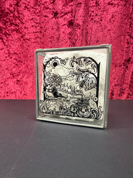 Vintage Trinket Box - Glass - Hand Painted Magical Forest Scene - Mirrored Bottom - Stained Glass Arts