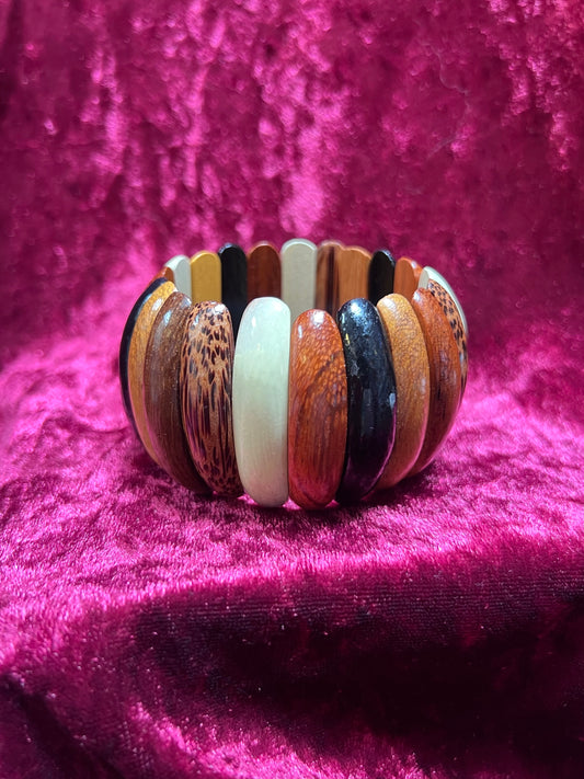 Vintage Jewelry - Elastic Bangle Bracelet - Multi-Tone Wood