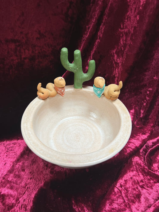 Vintage Kitchen - Ceramic Serving Bowl - Bandit Rattlesnakes & Saguaro Cactus