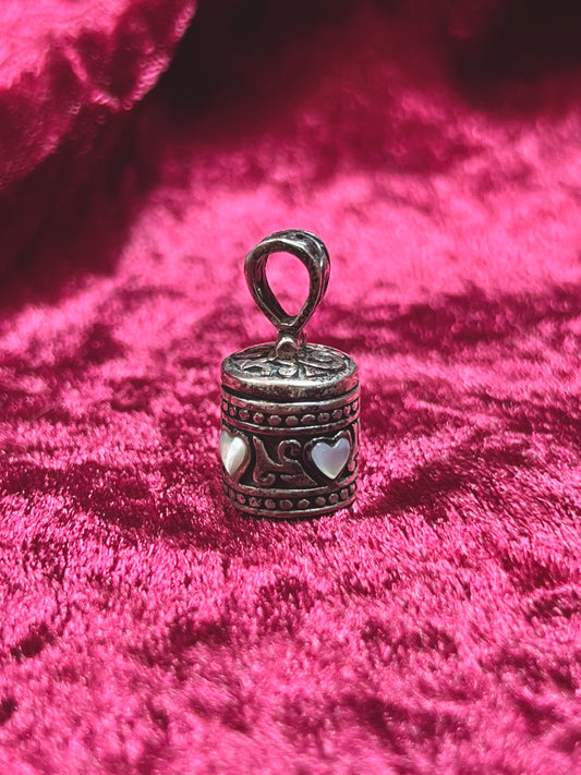 Vintage Jewelry - Pendant Pill Box / Locket - Inlaid Hearts - Ornate Filigree - 925 Sterling Silver