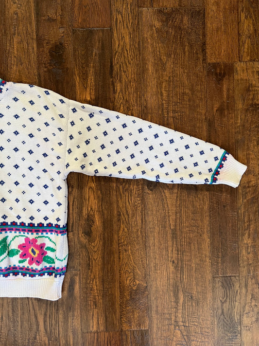 Vintage Clothing - Crewneck Knit Sweater - Pink Floral Banner - Medium - Eddie BauerRegular price $19.99 USDRegular priceUnit price per-