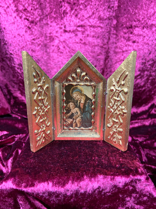 Vintage Religio - Gilt Wood Triptych - Florentine Madonna and Child - Made In Italy