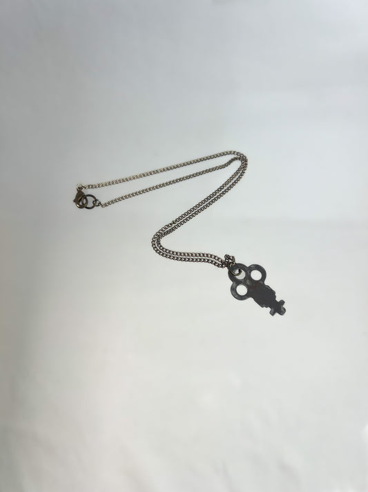 Vintage Jewelry - Pendant Necklace - Light Brass Tone Cable Chain - Old Tri-Point Key