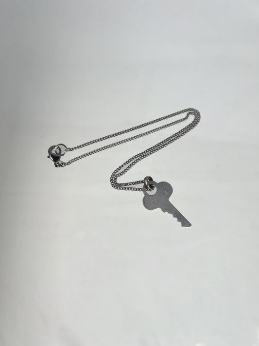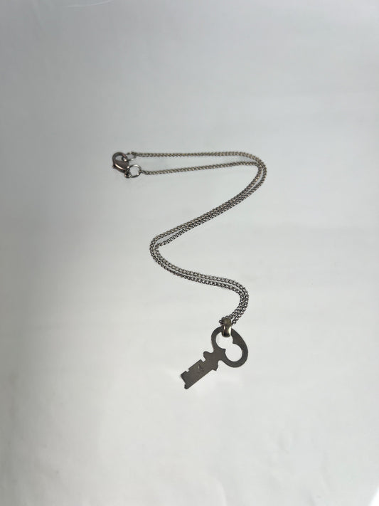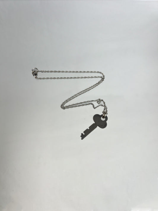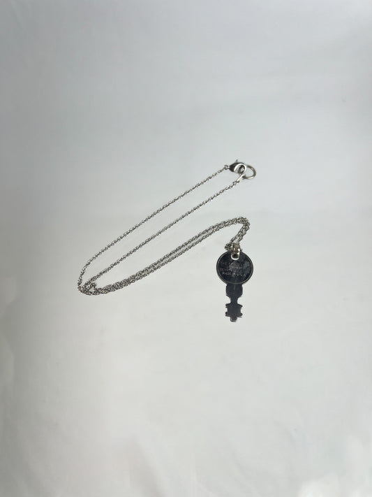 Vintage Jewelry - Pendant Necklace - Silver Tone Cable Chain - Old Tele-Lock Co. Key