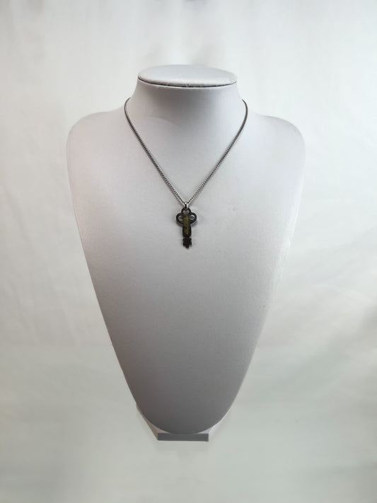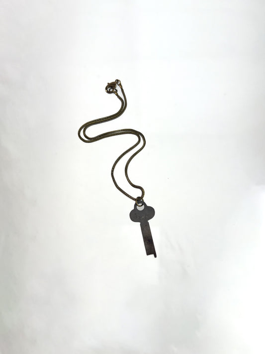 Vintage Jewelry - Pendant Necklace - Brass Snake Bone Chain - Old Key S18