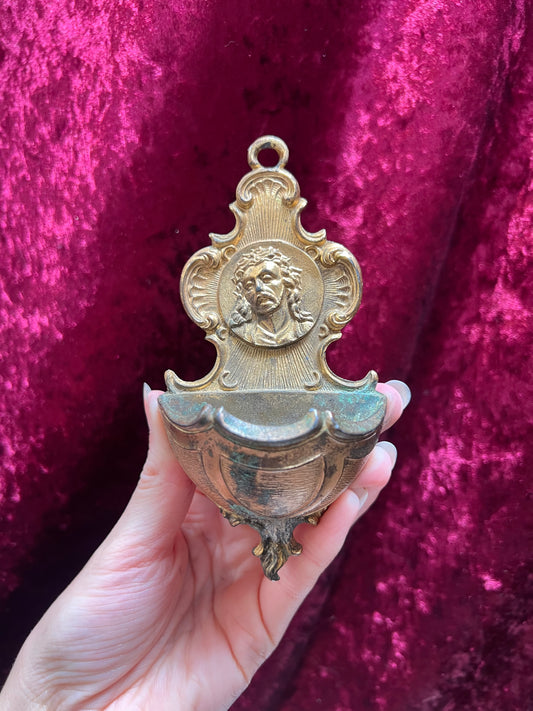 Vintage Religo - Holy Water Font - Jesus Christ in Thorned Crown - BrassRegular price $69.99 USDRegular priceUnit price per-