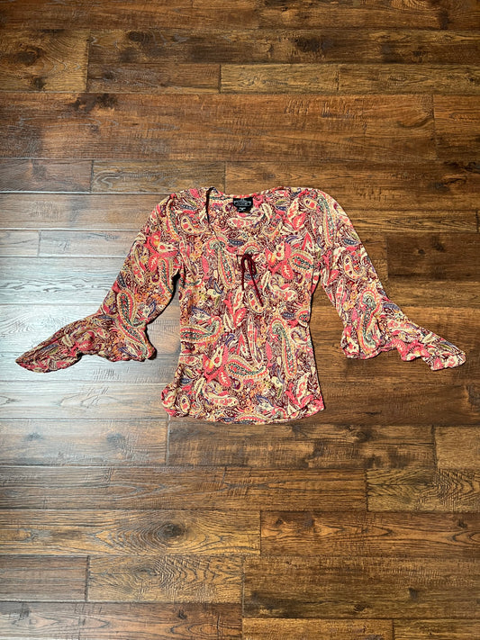 Vintage Clothing - Y2K Scoop Neck Blouse - Butterfly Sleeves - Pink Paisley Print - Small - AngieRegular price $19.99 USDRegular priceUnit price per-