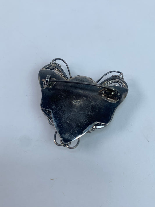 Vintage Jewelry - 925 Silver Brooch - Butterfly - Yellow Cut Glass Rhinestone