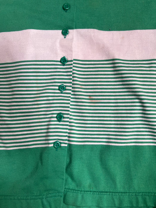 Vintage Clothing - Button Up Polo - Green and White Stripes - Carriage Court - Medium