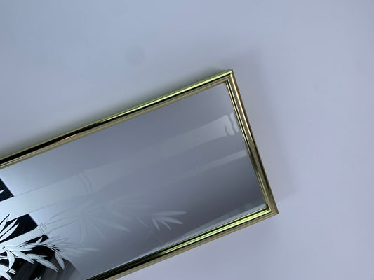Vintage Mirror - 1980s Etched Bamboo Mirror with Gold Frame - 16 x 6"