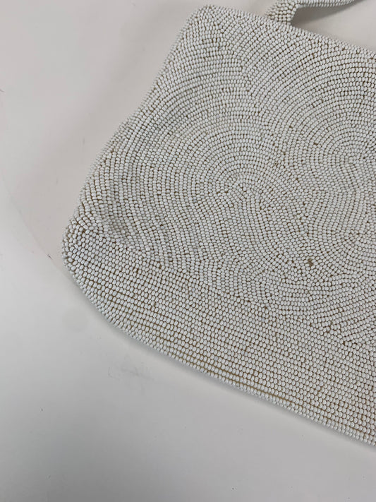 Vintage Purse - White Beaded Evening Bag with Hinge Closure - Frances Hirsch - Made In Belgium