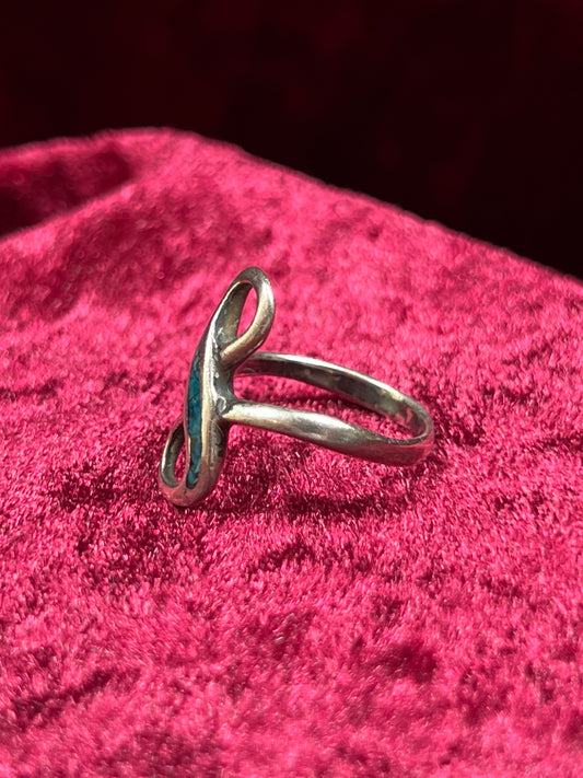 Vintage Jewelry - Infinity Ring - Sterling Silver - Inlaid Turquoise Chips - 5