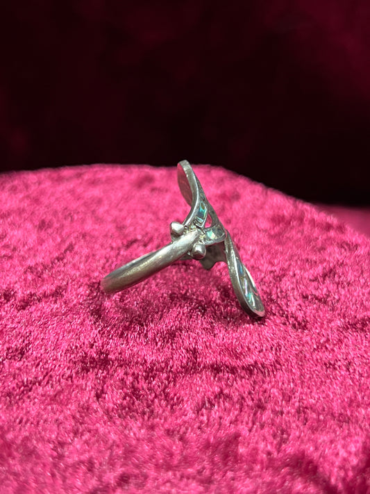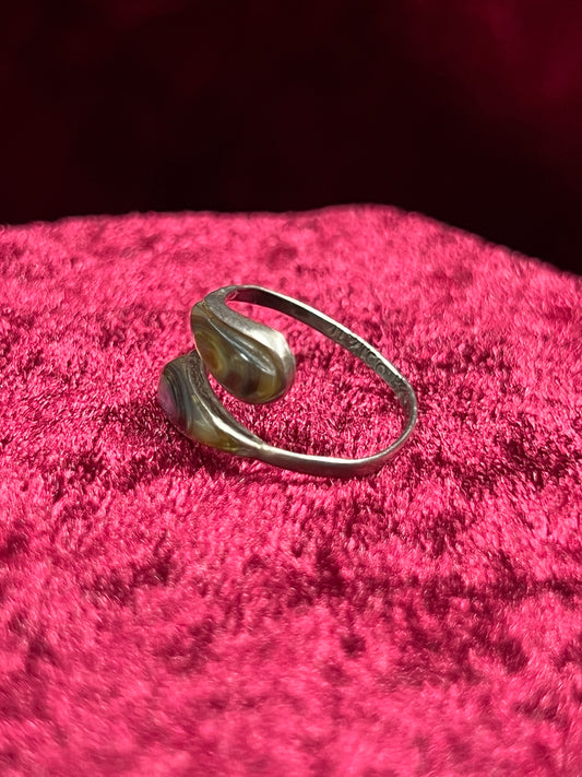 Vintage Jewelry - Bypass Ring - 925 Silver - Inlaid Abalone Shell - 7 - Mexico
