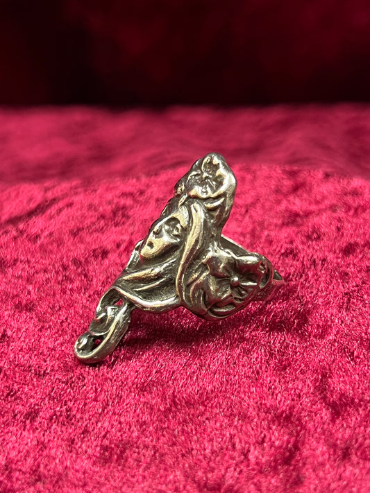 Vintage Jewelry - Ring - Sterling Silver - Art Nouveau Flower Goddess Face - 8