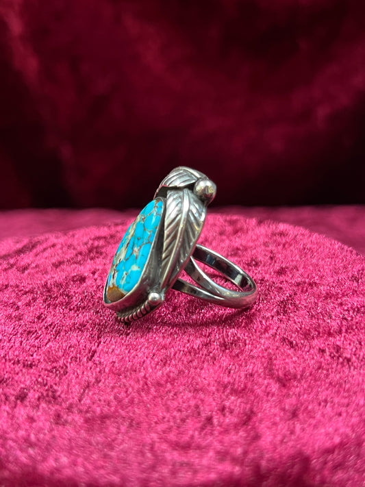 Vintage Jewelry - Chunky Ring - Sterling Silver - Natural Turquoise - J.C. - 8.25