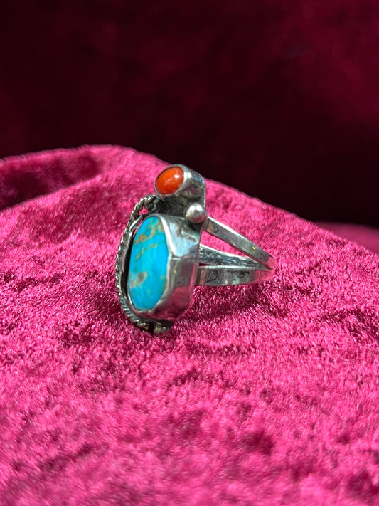 Vintage Jewelry - Ring - Sterling Silver - Turquoise and Coral - 7.25