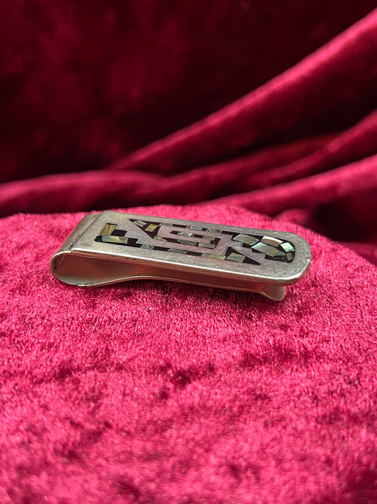 Vintage Accessories - Money Clip - 925 Sterling Silver with Inlaid Abalone Shell - Mexico