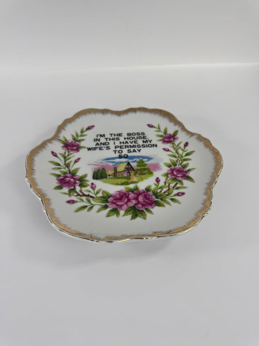 Vintage Kitsch Gag Gift Wall Plate - "Im The Boss In This House" Husband Wife Joke