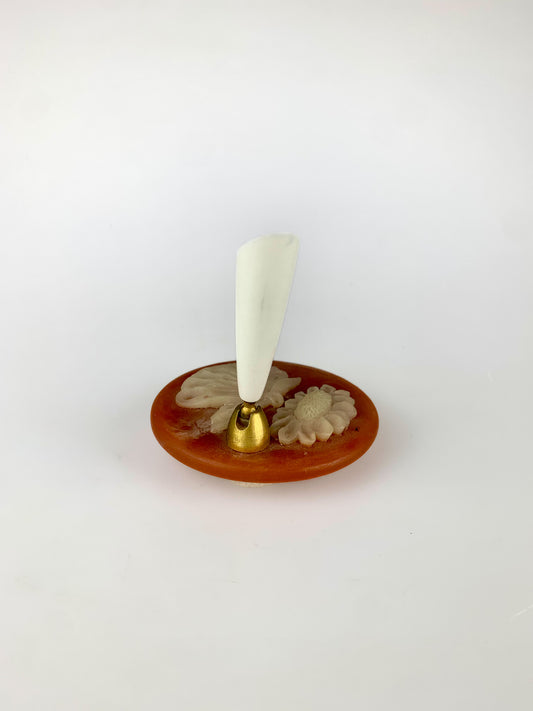 Vintage Desk Top Pen Holder - Pink and Cream Incolay Stone Butterfly & Sunflower
