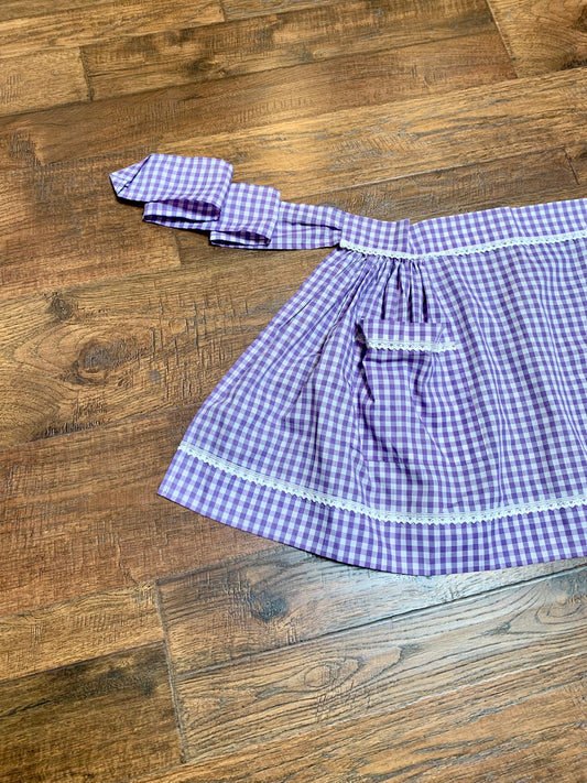 Vintage Lilac & Periwinkle Gingham Half Apron with Lace Detail