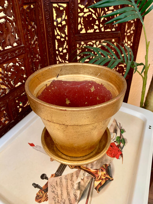Vintage Pottery Barn Deroma Gilt Terracotta Pot and Saucer - Made In Italy - 8”
