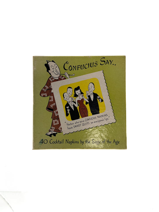 Vintage Cocktail Napkins - Confucius MCM - Illustrated Funny Kitsch - 1950s