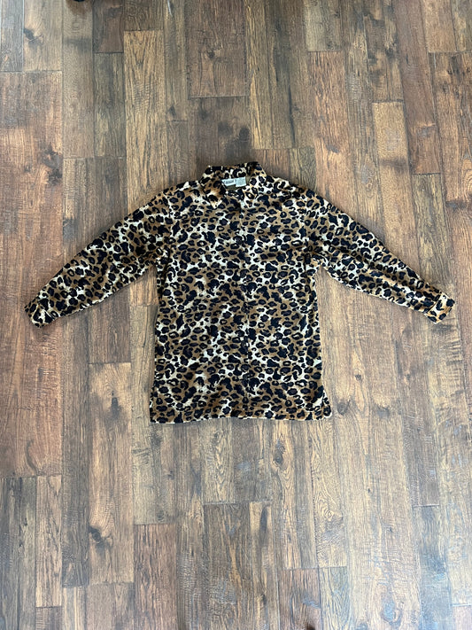 Vintage Clothing - Button Up Long Sleeve Shirt - Cheetah Print - Capacity Knits - Small