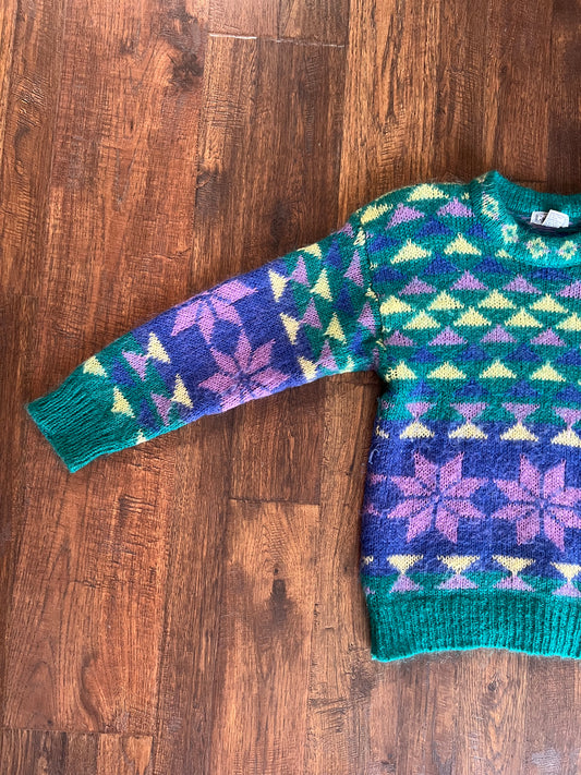 Vintage Clothing - Knit Pullover Sweater - All Over Geometric Pattern - Gallagher - Small