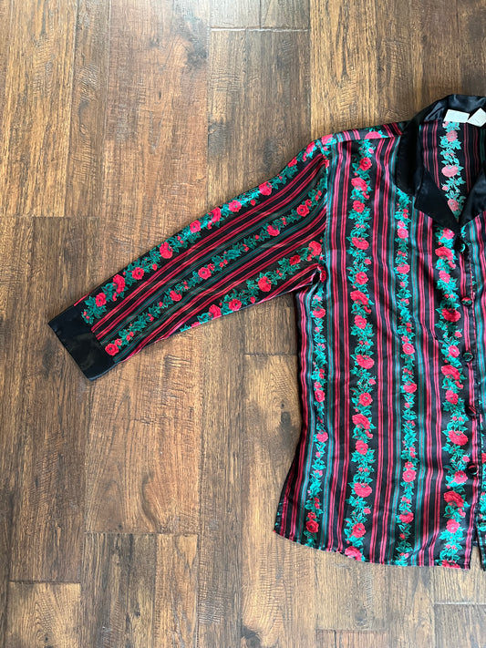 Vintage Clothing - Button Up Long Sleeve Shirt - Romantic Roses - Delicates - Large