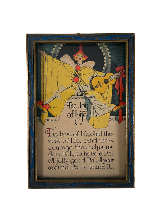 Antique Wall Art - Art Deco Framed Print - The Joy of Life Poem - Pierrot - G.A. Co. - 1926