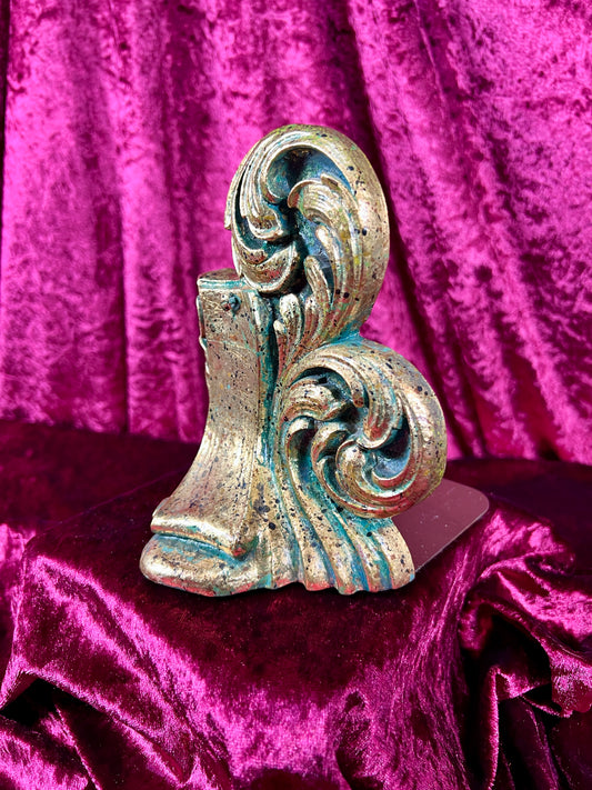 Vintage Home Decor - Single Bookend - Hollywood Regency Gold Scroll with Blue Undertones