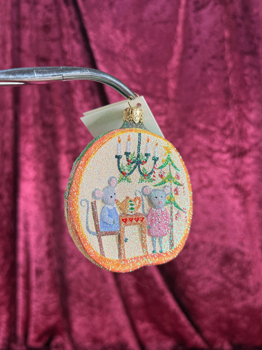 Vintage Christmas - Handblown Glass Ornament - Mouse Family In A Pumpkin - Patricia Breen - Poland
