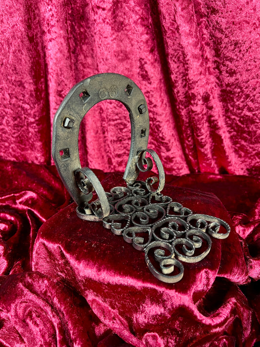 Vintage Home Decor - Wrought Iron Trinket Shelf - Lucky Black Horseshoe