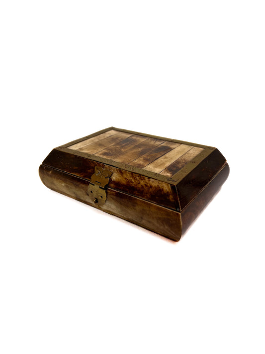 Vintage Trinket Box - Bone and Brass - Engraved Floral Pattern - Made In India