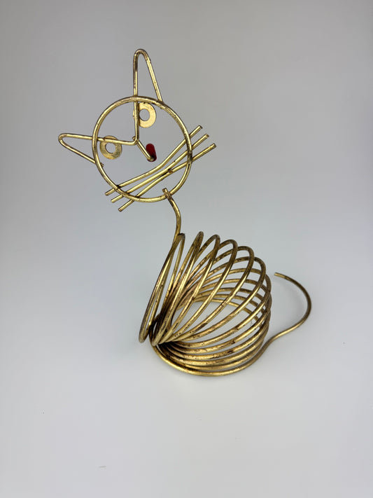 Vintage Decor - MCM Brass Cat Coiled - Wire Letter Holder