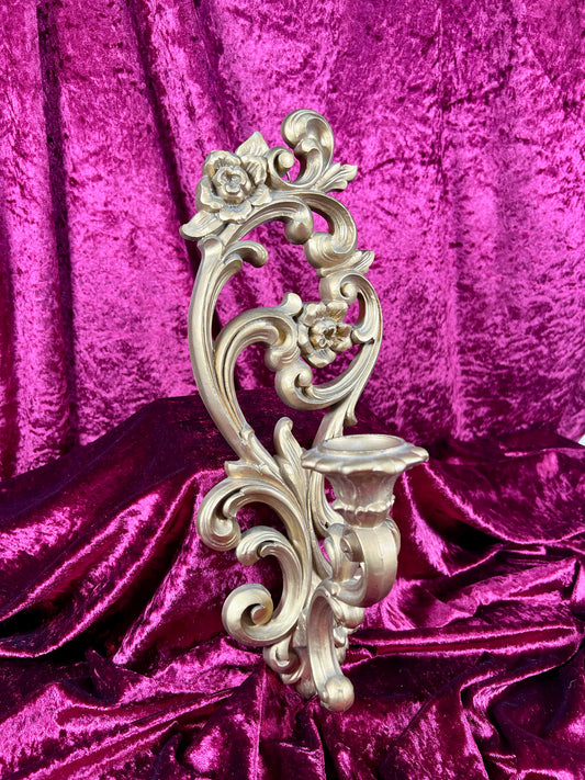 Vintage Home Decor - Wall Candle Holder - Floral Hollywood Regency Style - #4811 - Syroco - #1
