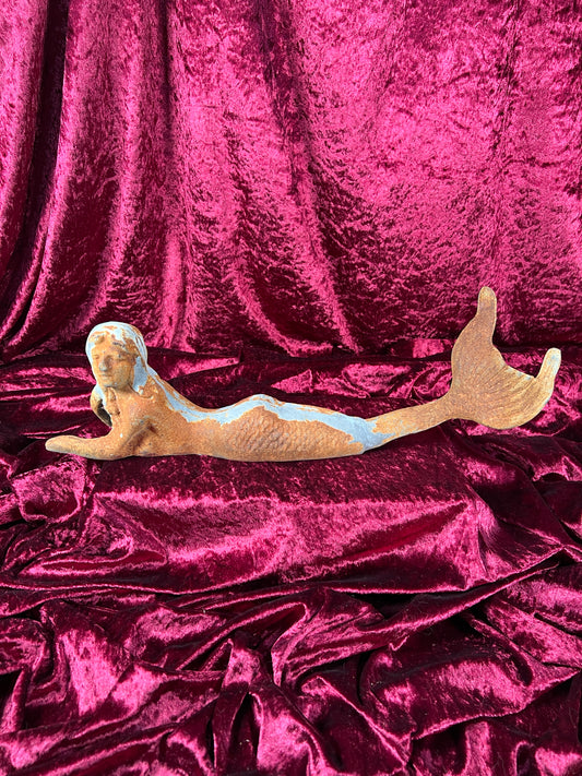 Vintage Home Decor - Cast Iron Rustic Garden Statue - Reclining Mermaid