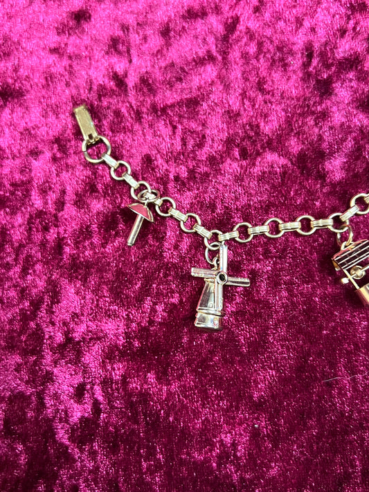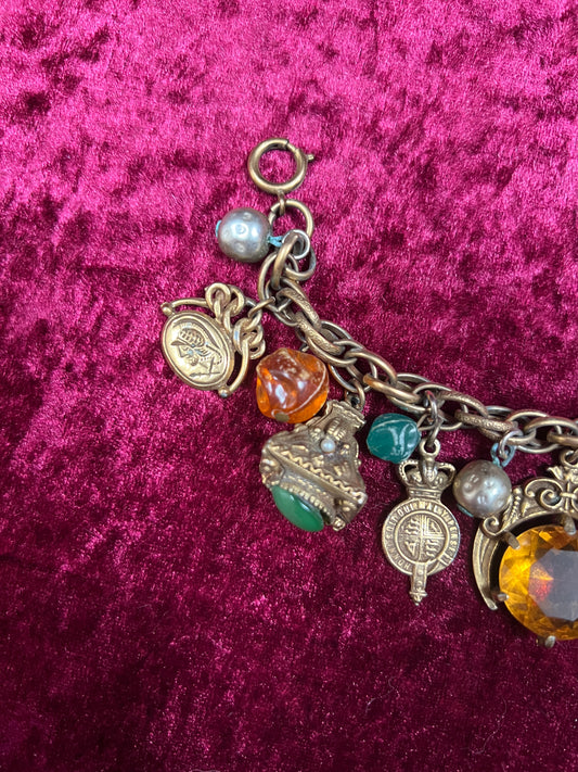 Vintage Jewelry - Charm Bracelet - Brass - Chunky Maximalist Charms - Japan