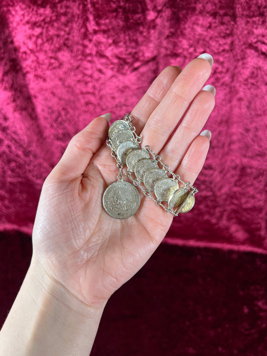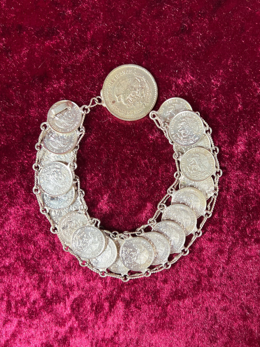 Vintage Jewelry - Coin Bracelet - Silver - Mexican Centavos - 7"