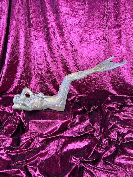 Vintage Home Decor - Cast Iron Garden Statue - Mermaid Laying Down