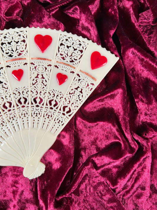 Vintage Home Decor - Decorative Plastic Hand Fan - Red Hearts