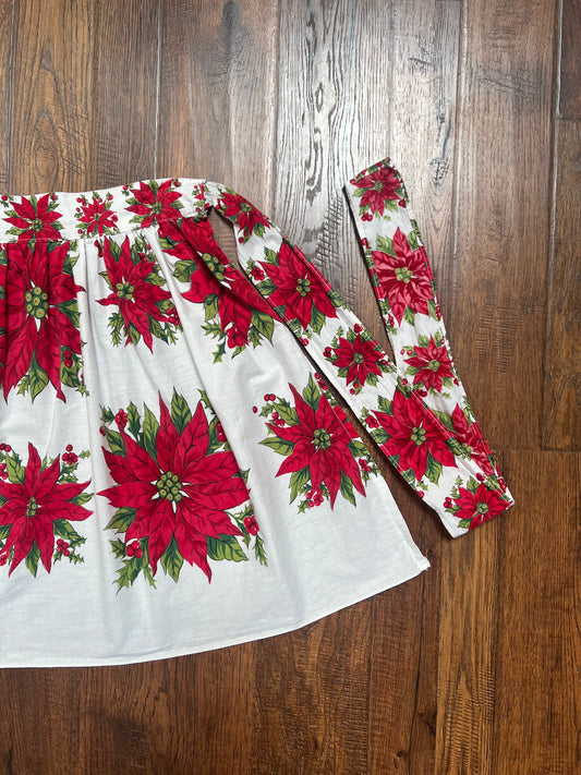 Vintage Clothing - Handmade Half Apron - Poinsettia Print