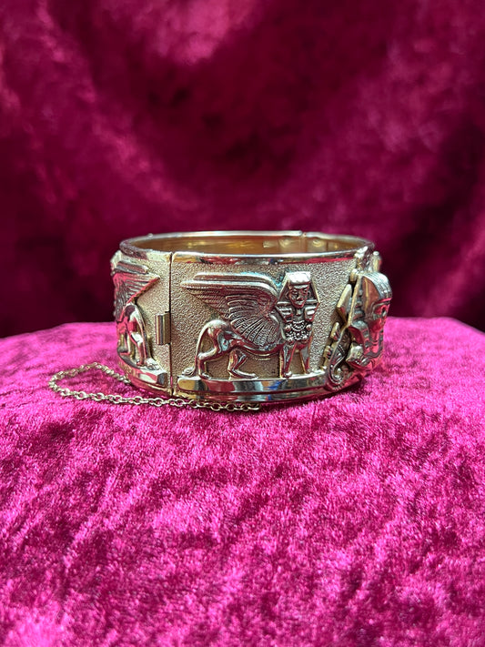 Vintage Jewelry - Chunky Cuff Bracelet - Gold Tone - Egyptian Revival - Whiting & Davis Co.
