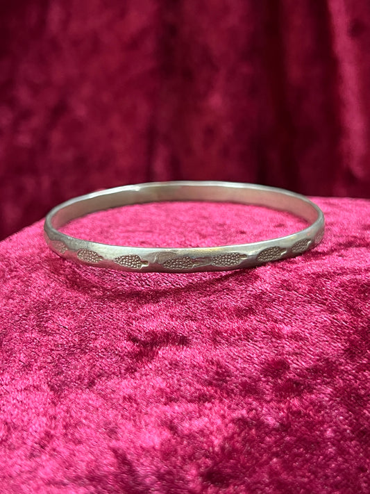 Vintage Jewelry - Curved Bangle Bracelet - Sterling Silver - Flower Stamps - Mexico