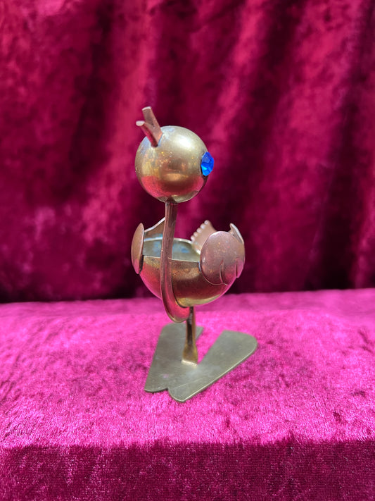 Vintage Ashtray - Mixed Metal Copper Bird with Blue Rhinestone Eyes - Mexico