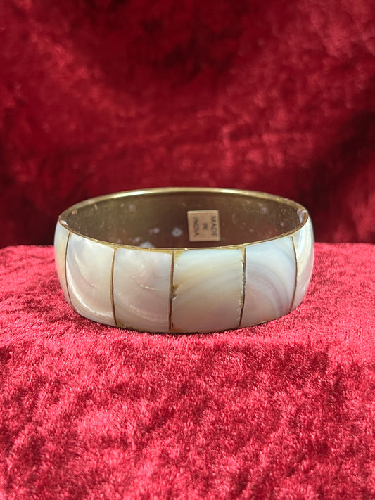 Vintage Jewelry - Chunky Bangle Bracelet - Brass and Mother Of Pearl - Made In India