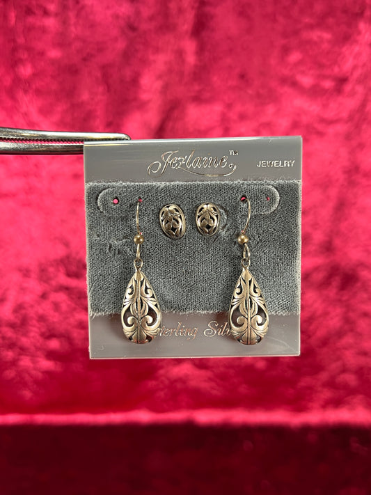 Vintage Jewelry - Studs and Dangling Earrings Set - Sterling Silver - Jezlaine - Made In USA
