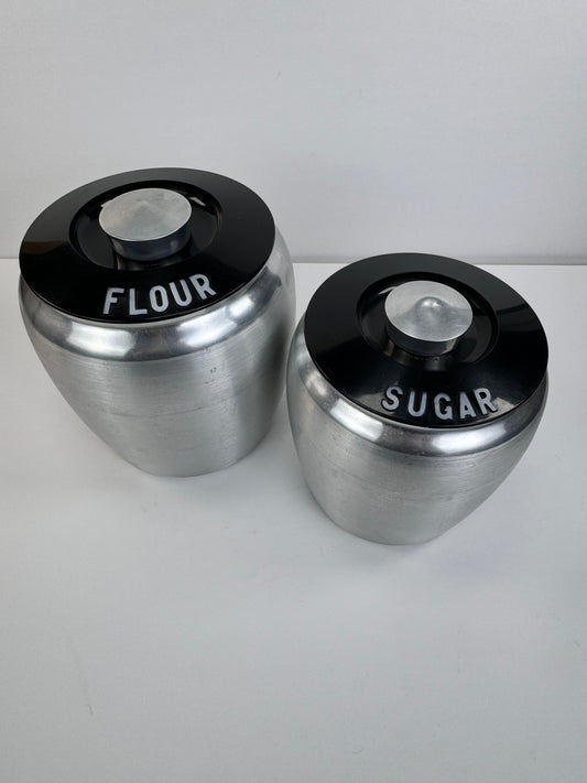Vintage Kromex Aluminum Canister Set - Flour & Sugar - Black Lid