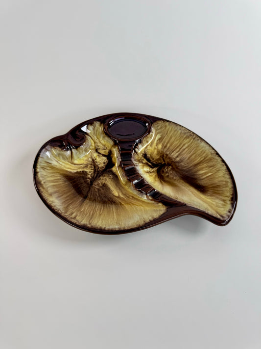 Mid Century Modern Ceramic Ashtray - Brown Drip Glaze - Made In Japan