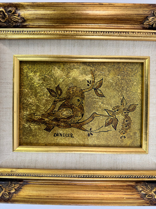 Vintage Framed Art - Gold Leaf Bird on a Branch with Ornate Gilt Frame - DENDLER